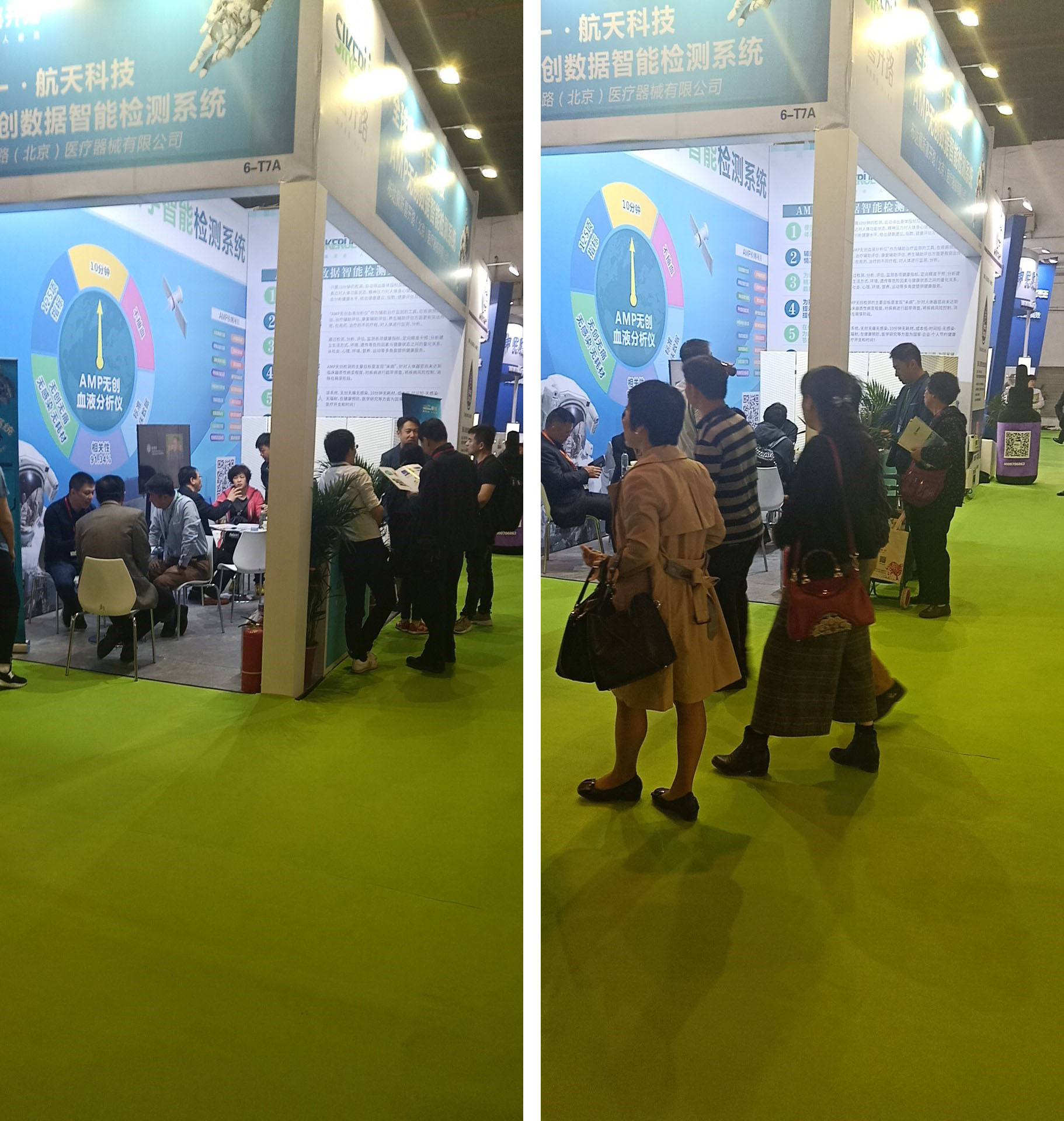 在展览会上人们纷纷体验AMP《无创血液分析仪》检测,受到了大家的一致好评!它无痛无创无感染,快速便捷的国际临床数据标准指标给人们一目了然的对身体进行了评估-提示-指导及数据化智能化的健康管理系统深受老百姓的喜爱。