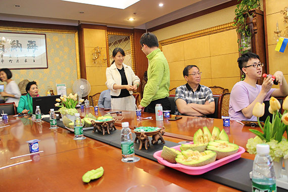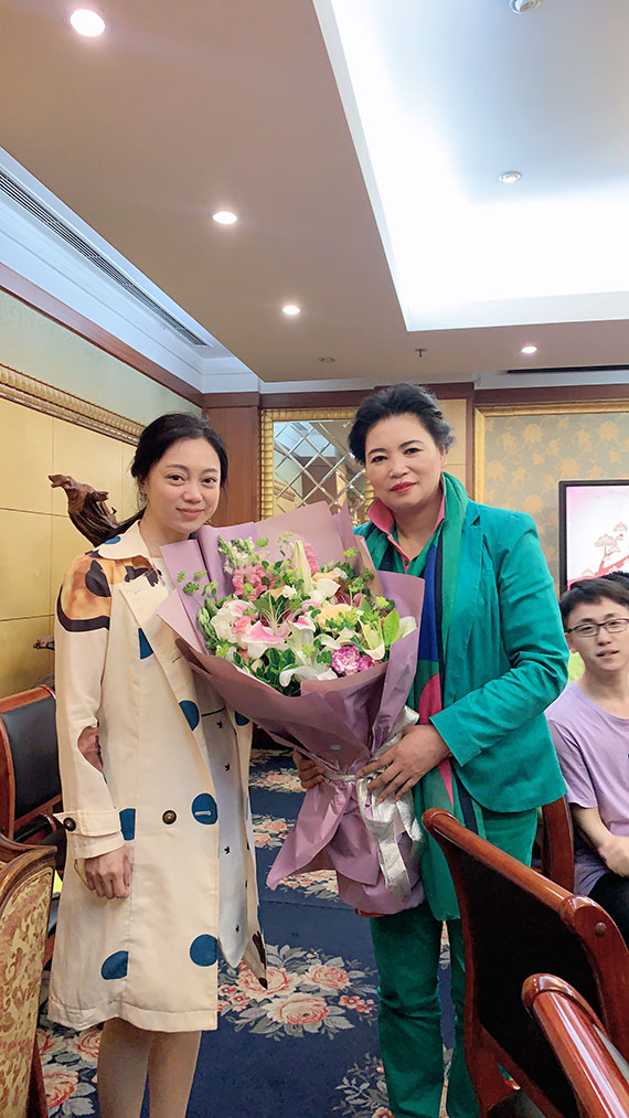 活动当天,赵总收到公司员工代表献花。